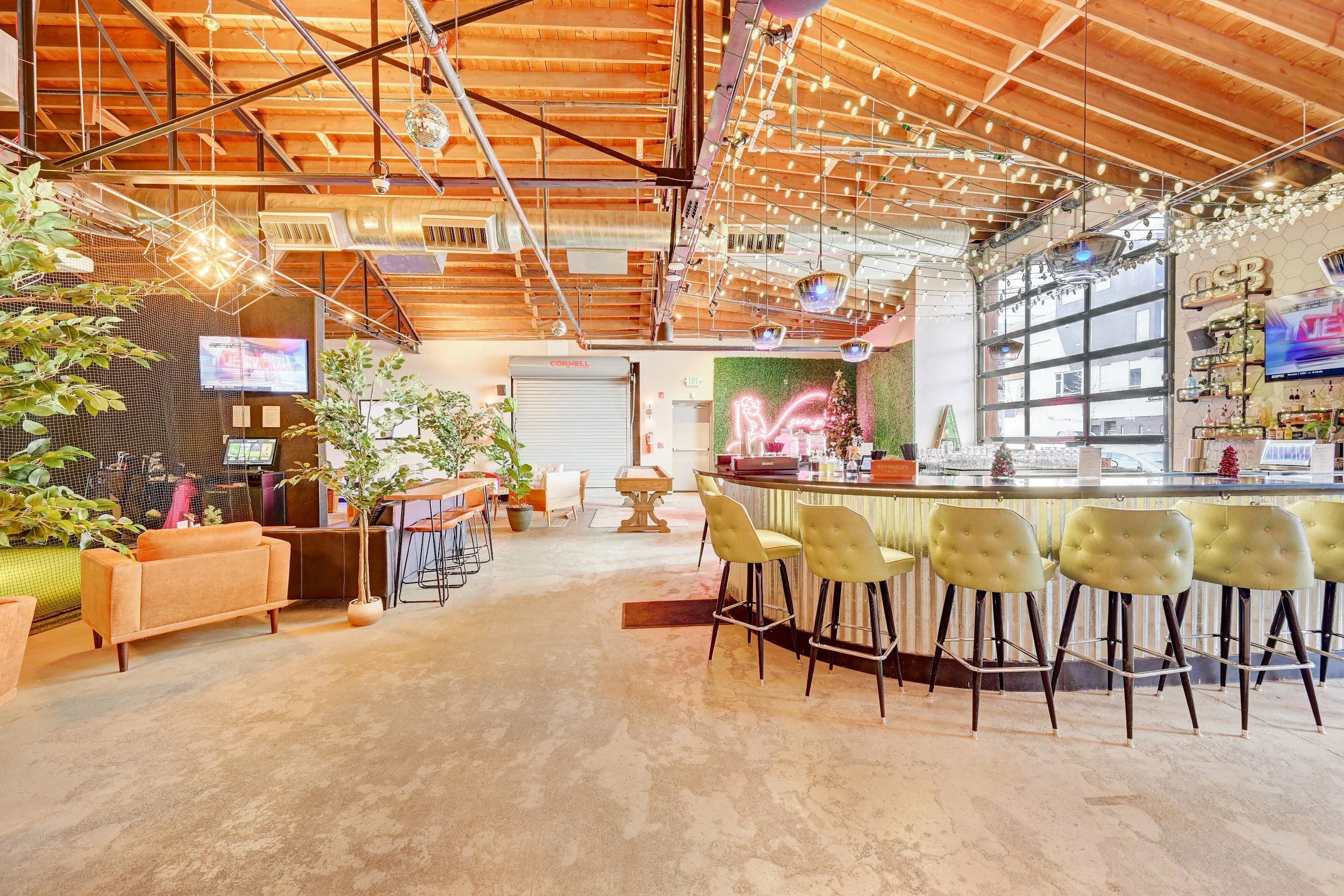 • Logo with the words "the Olive Garden" in green cursive font on a black background.